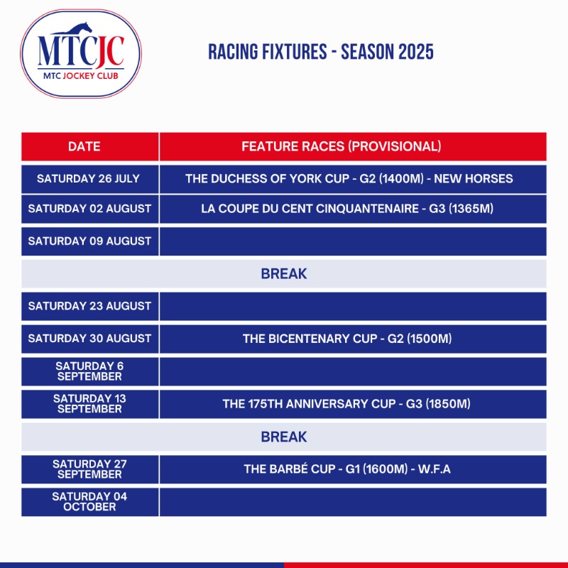 Mauritius Racing Calendar 2025/2026 season