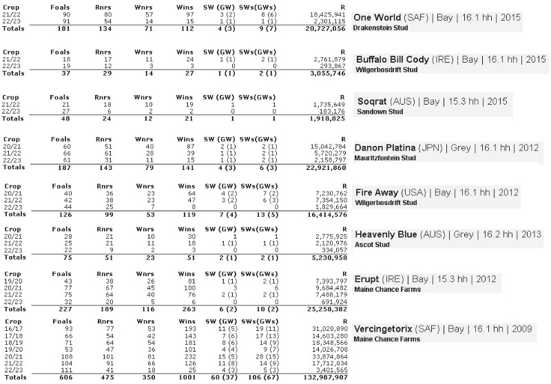 Current SA sires 8 of the 60 listed
