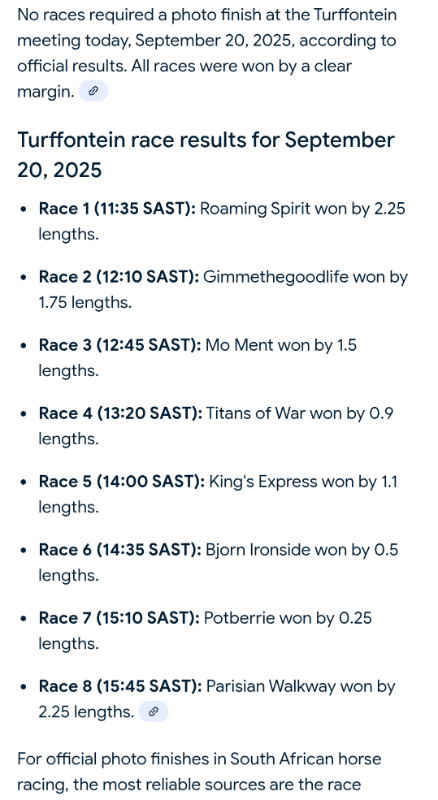Re: TURFFONTEIN SATURDAY 20 SEPTEMBER 2025