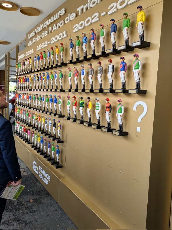 6 months 3 weeks agoColours of all the ARC winners. These are replicas not the actual Jockeys they are a litle bit taller.