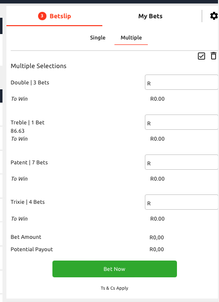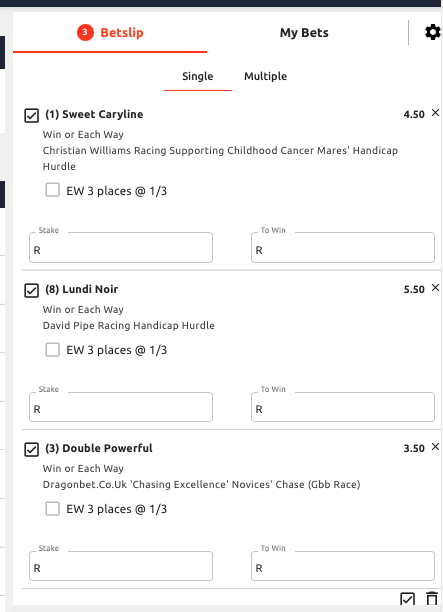 One thing I pointed out. Trixie bet taken. One cannot see the dbls and payouts. I called into the help line the staff were as dazed as me. I choose peace.