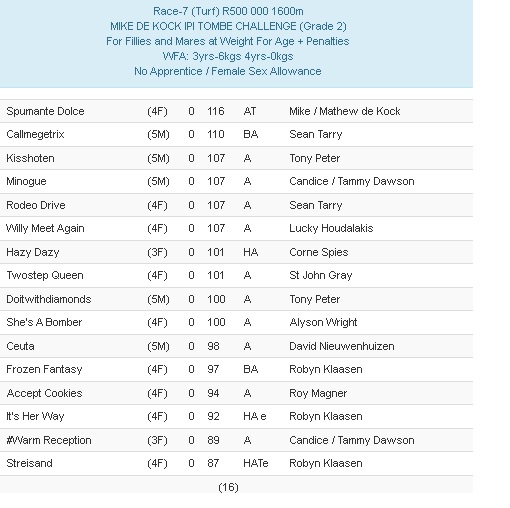 Callmegetrix nominated. She is one of my horses to follow this season.