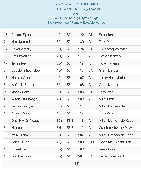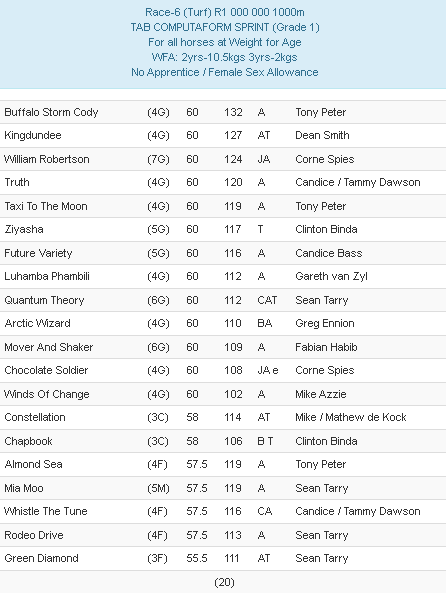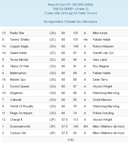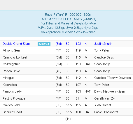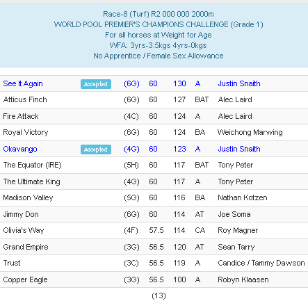 Re: 4 April 2026 Nominations Premiers - 3 Grade 1s and the Grade 2 SA Derby