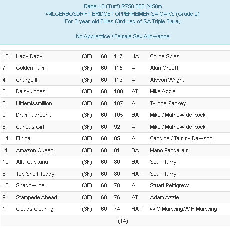 [justify]No COUNCILLOR???? IN THE Oaks??? Come on MDK!!!! Unless she is hurt after her last run???[/justify]