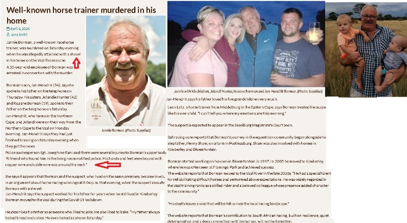 Tragic news from the Vaal...trainer Jannie Bornman was murdered last night π’πππ