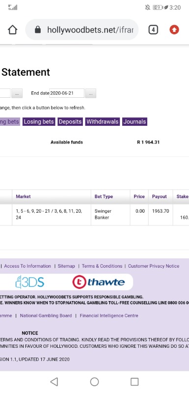 which is more than R2000 I now forfeit....then Id rather play on the tote.....Hollywoodbets bunch of skelms then.