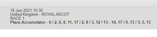 Re: Re:Re:Re:Re:Royal Ascot June 15-19