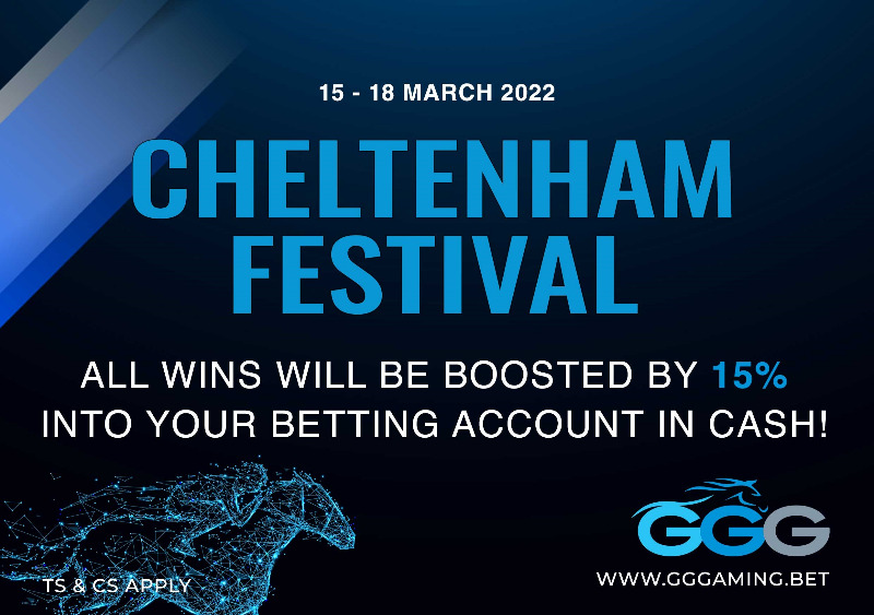 Cheltenham Festival “ GGGaming.bet is boosting ALL win bets on the Cheltenham Festival by 15% from 15-18 March! Make GGGaming.bet your site of choice - online betting done right! Ts & Cs apply”