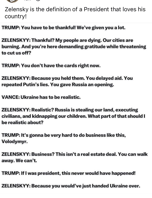 Very little support coming out of the US for Trump and Vance over that orchestrated charade in the Oval Office.Β
